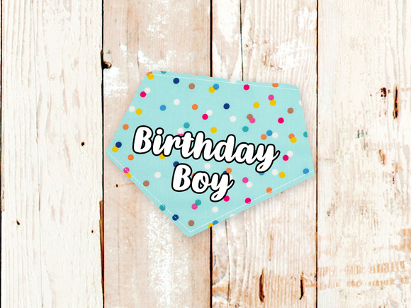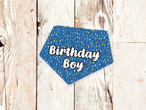 "Birthday Boy" Metallic Blue on Black Confetti Dog Bandana