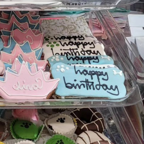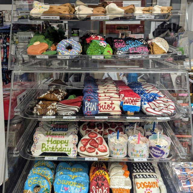 garden state bakery shelves stocked with their baked and frosted dog treats